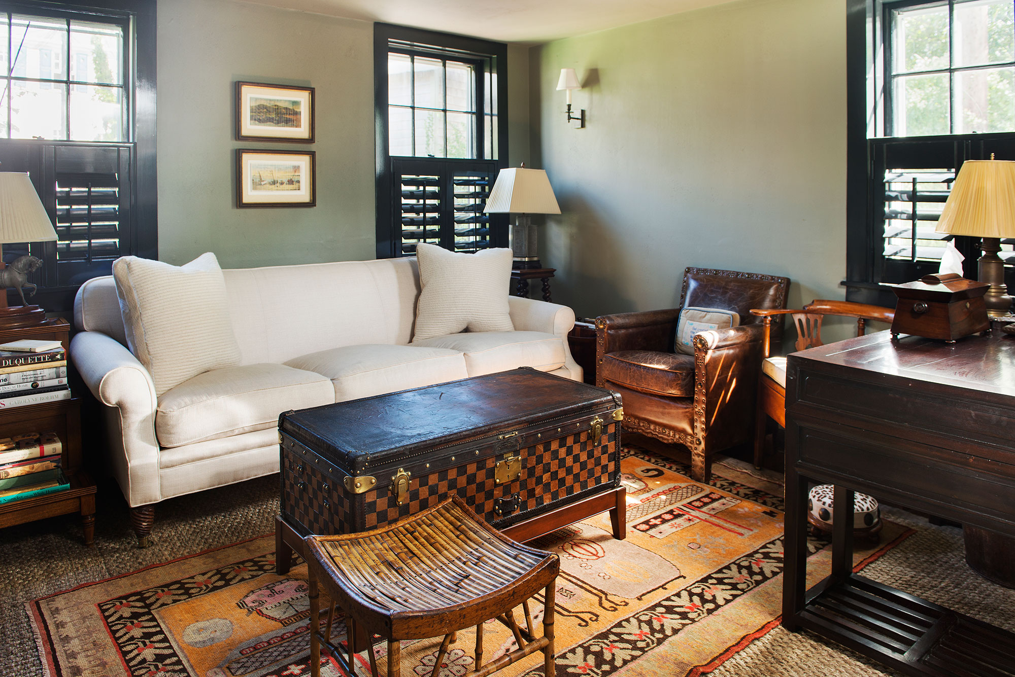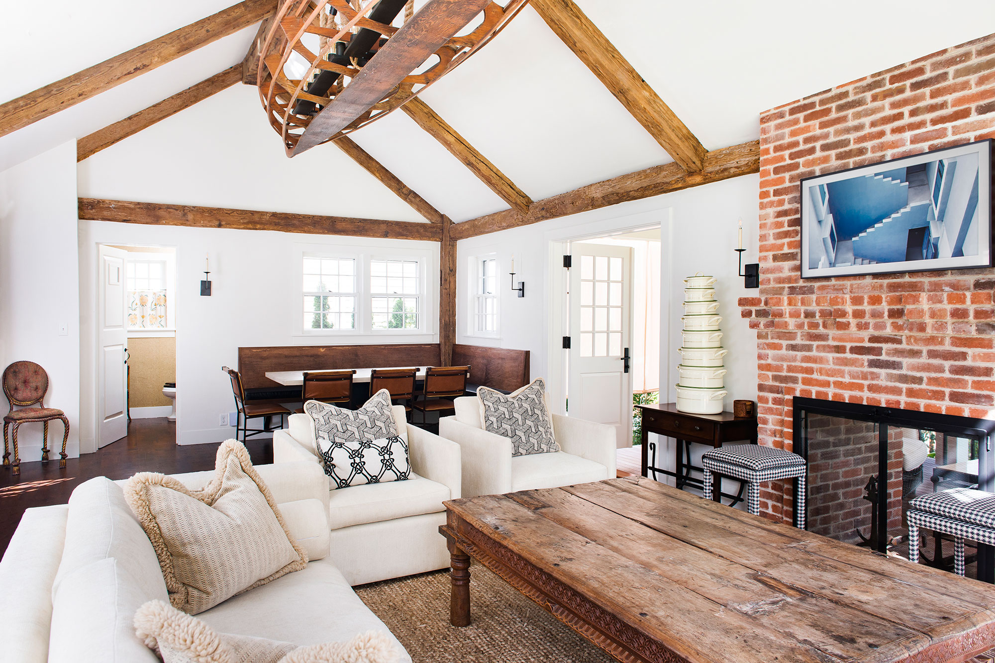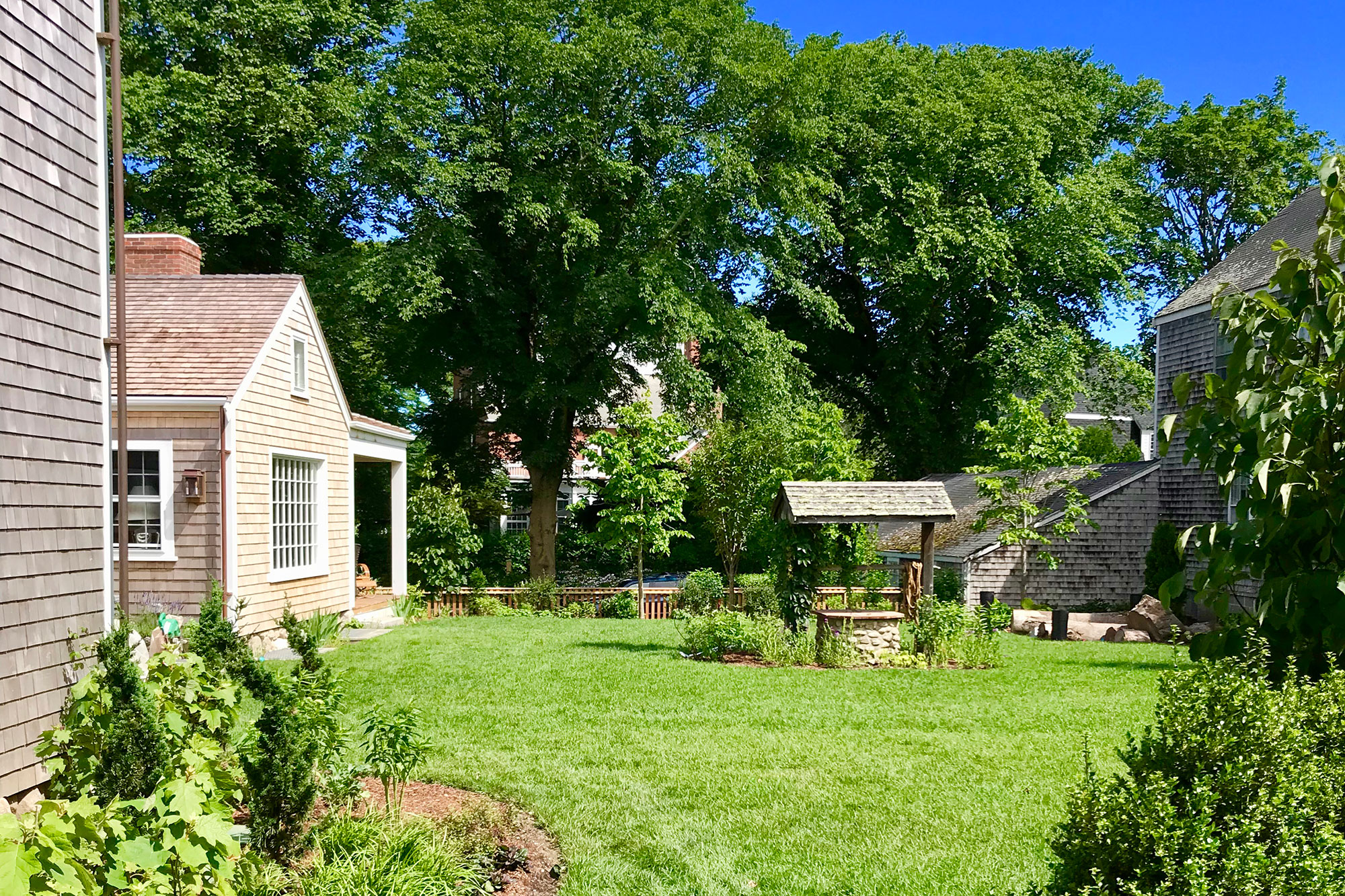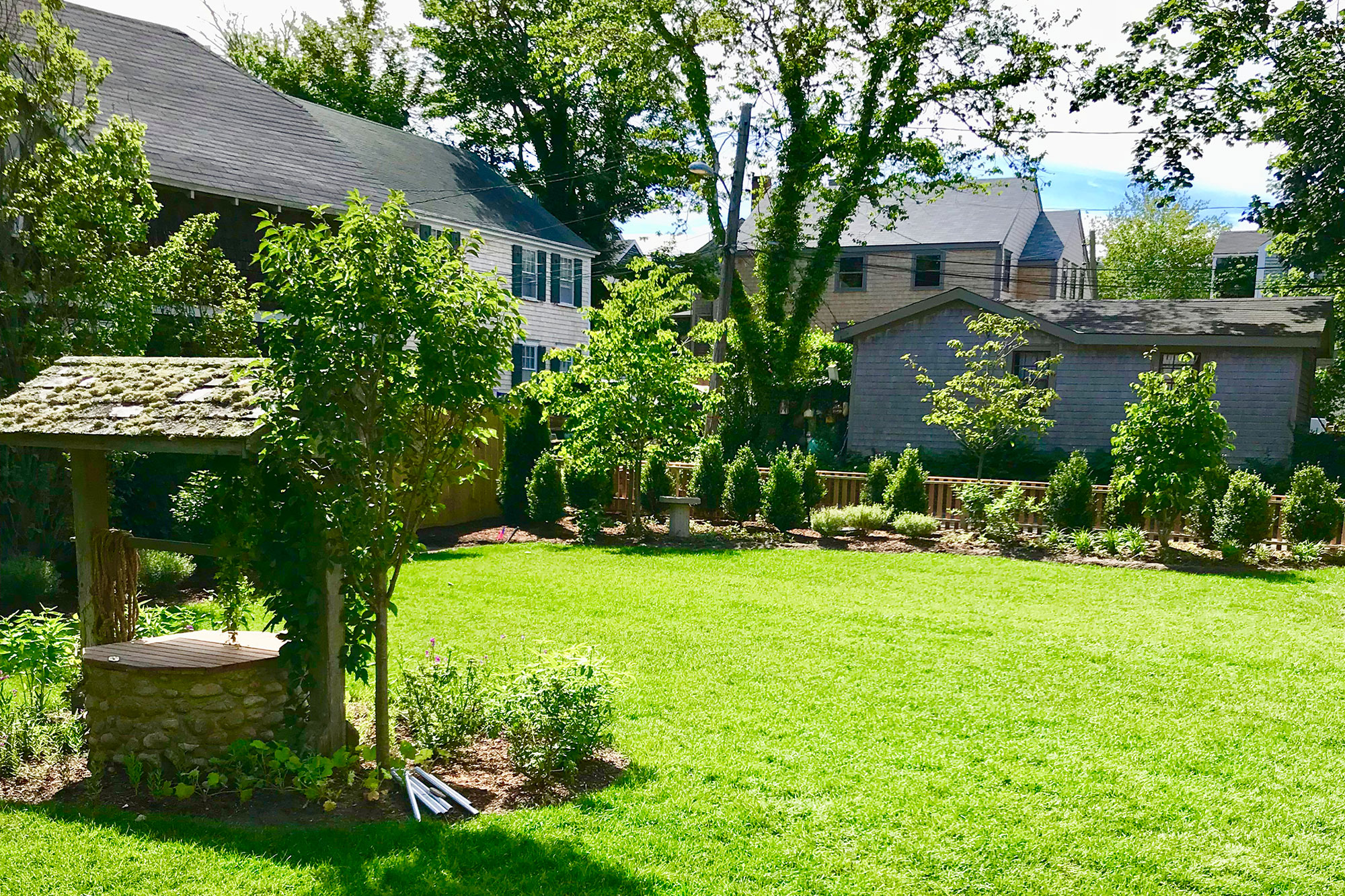 Off of the family room is a screened in porch with a lounge and a dinning table. Off of the large stone patio with ample seating and dining, plus a hard-piped grill, there is an unprecedented enormous in-town yard with landscaped grass with plenty of room for games, or an afternoon gathering with friends.